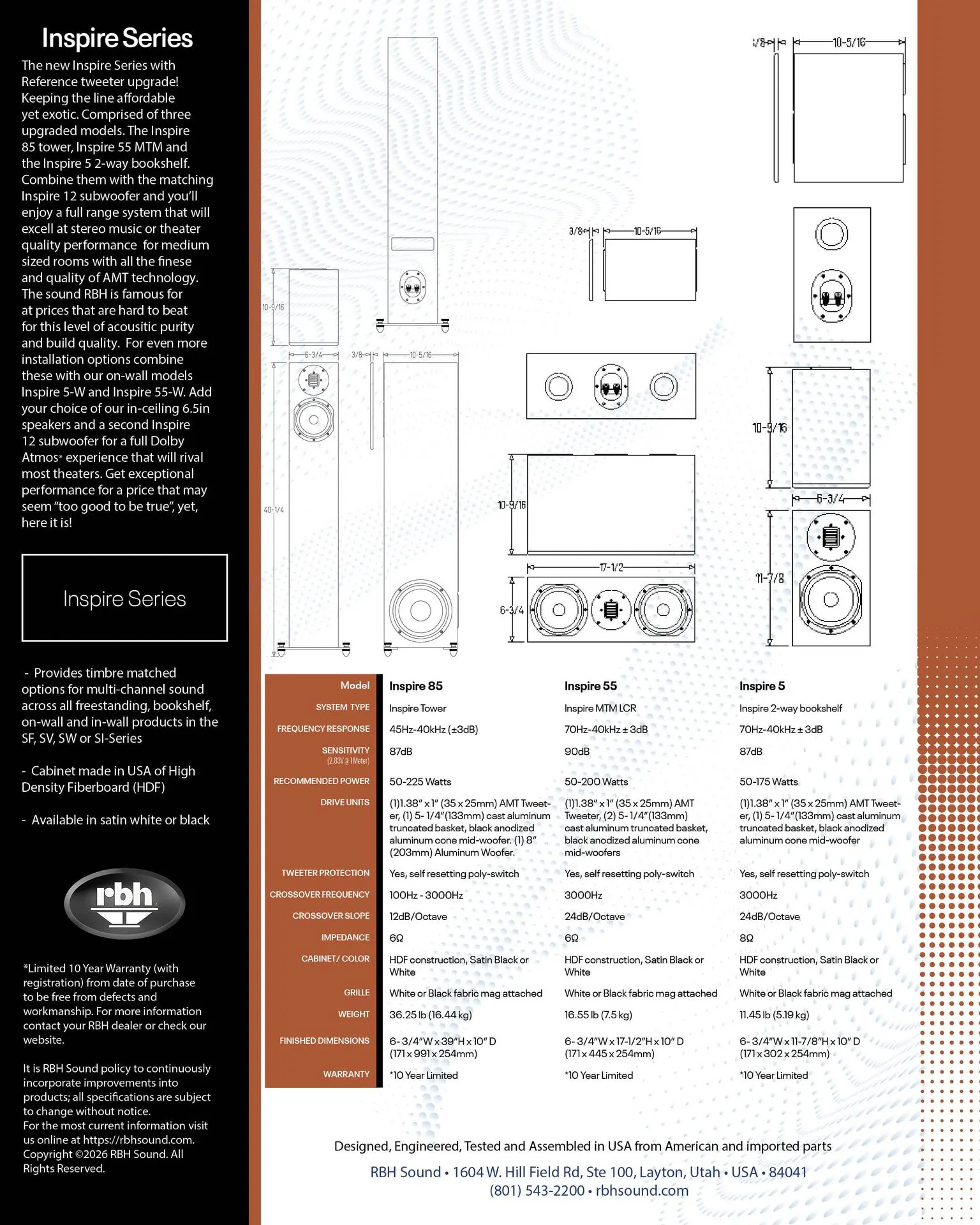 Legendary performance that won't break the bank, the 85-ir features a proprietary AMT tweeter, a 5.25 inch midrange, and an 8 inch side firing woofer for a stunning full range sound that extends to 40khz that is sure to impress for it's size and price point. The Inspire 85 is a revolutionary speaker that punches far above its price point.