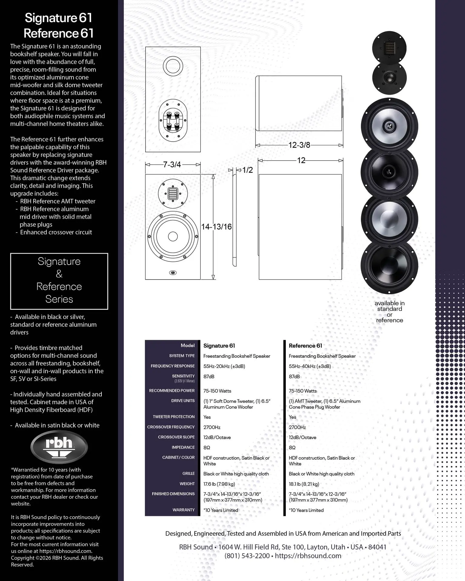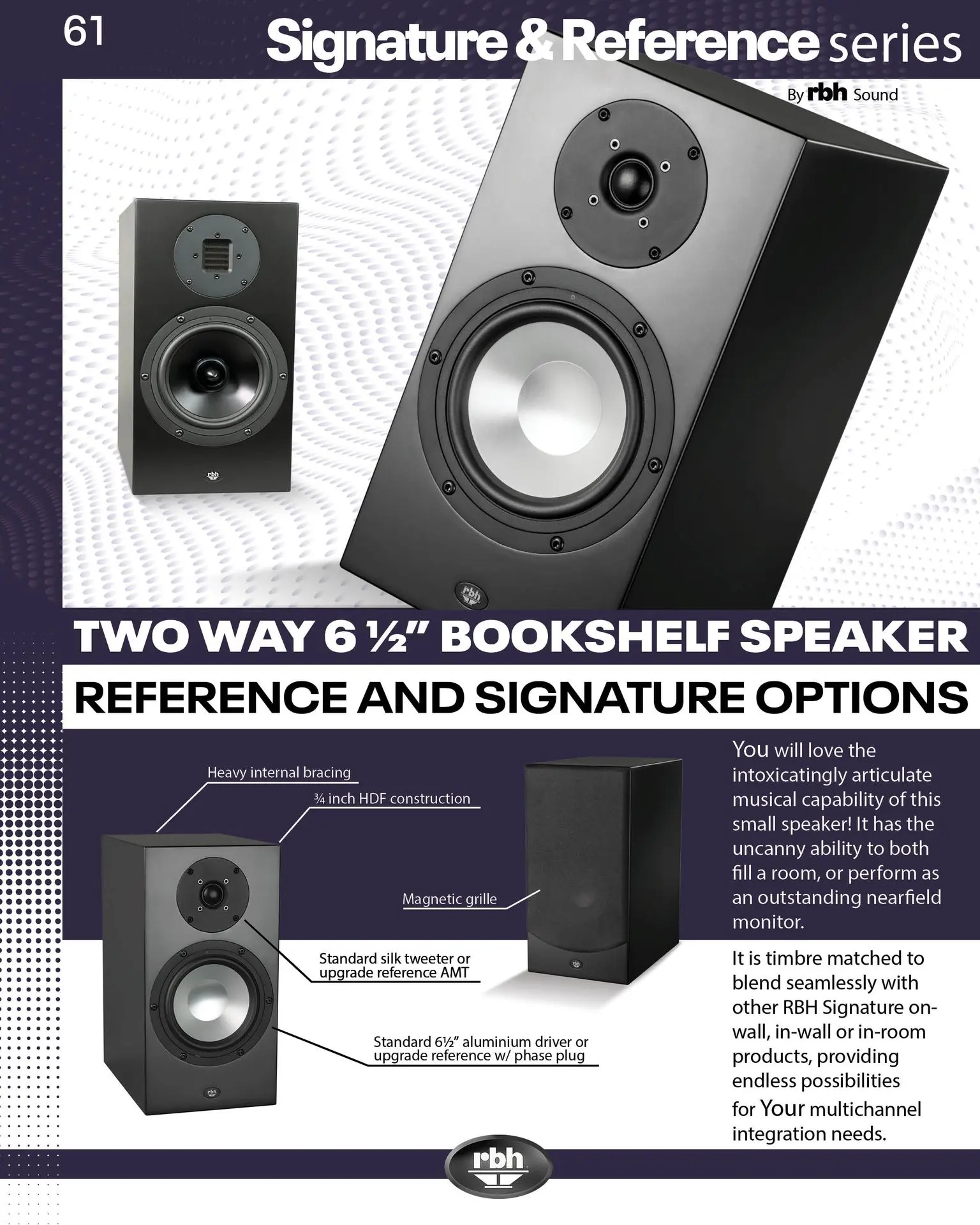 The Reference 61 provides an abundance of full, precise, room-filling sound with its 6½-inch reference aluminum cone woofer and AMT tweeter. Ideal for bookshelves or wherever traditional, floor-standing speakers just aren’t practical; the Reference 61 is equally adept for audiophile music systems as well as multi-channel home theater installation.