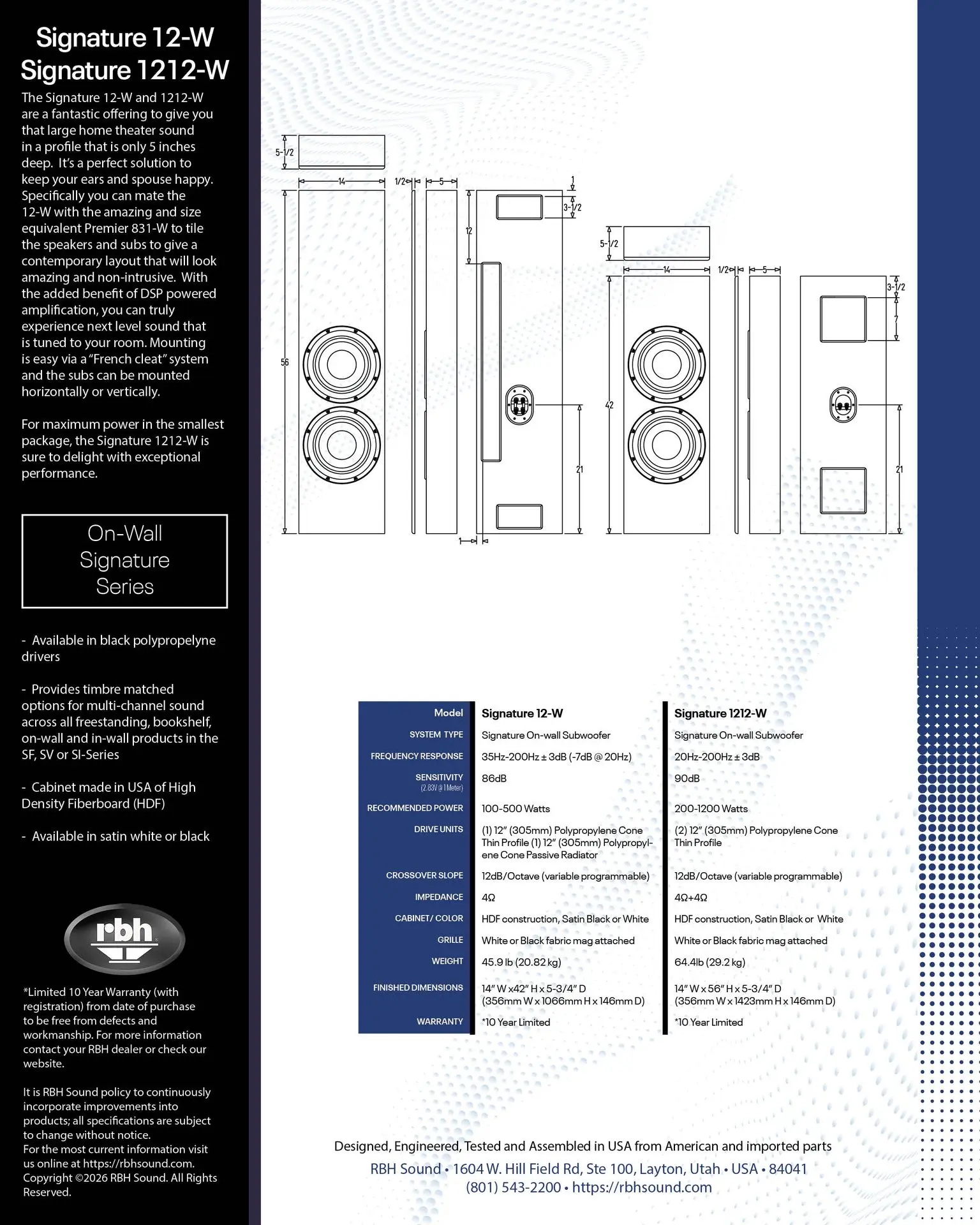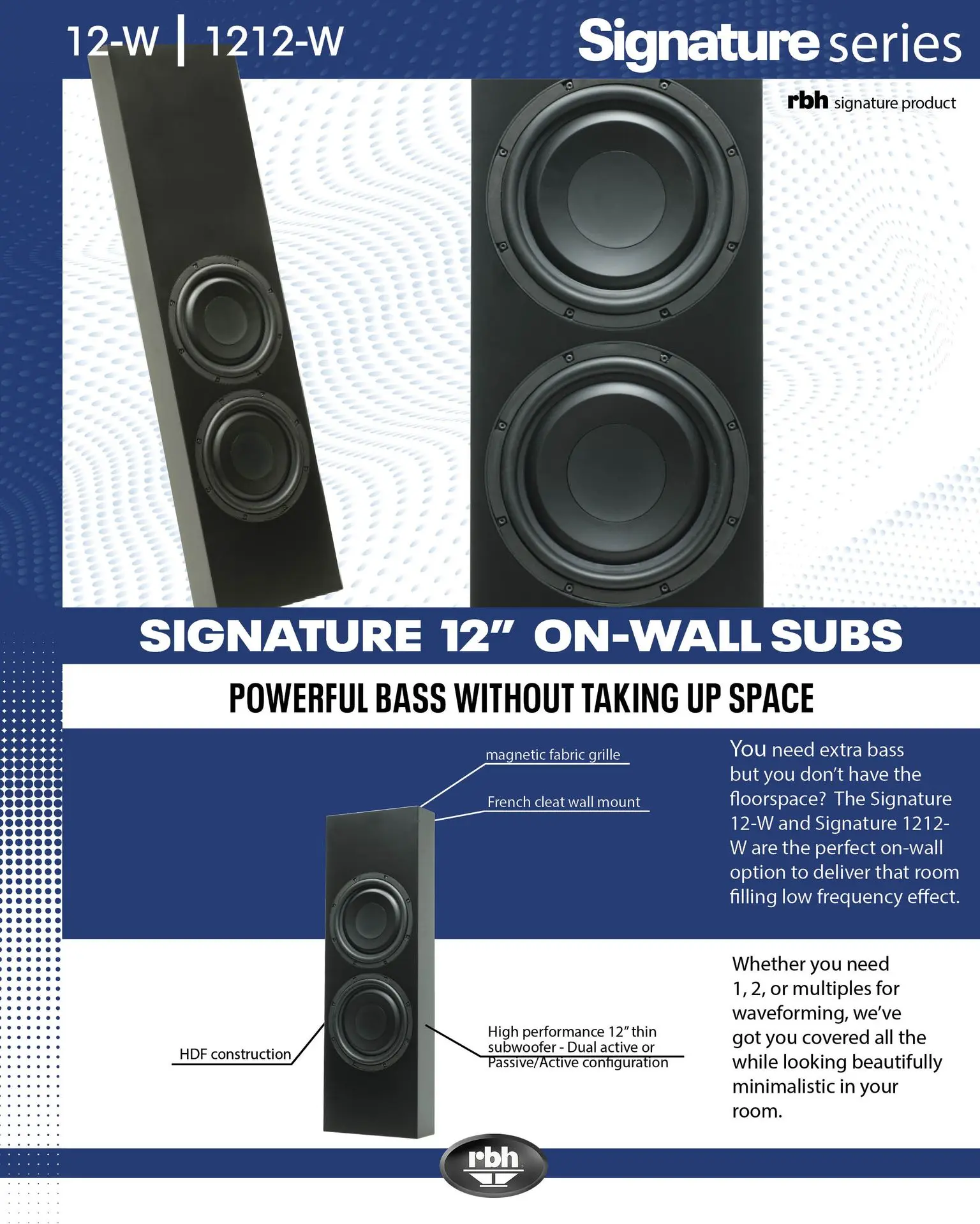Sleek and powerful, Signature 12-W is designed to complement any home theater with negligible floor space taken. Whether you're adding a space saving subwoofer, or you are getting into wave forming, the 12-W is here to fit your needs. When paired with our DSP controlled DA amplifiers, unlock the potential of the 12-W.