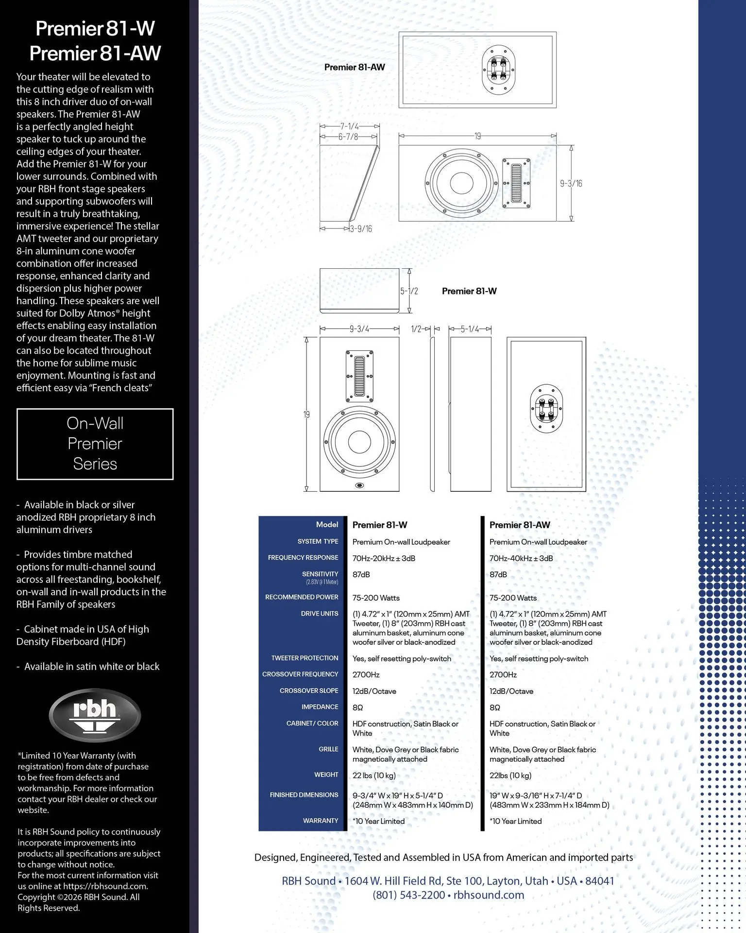 Perfect choice to timbre match with any of the Premier lineup. Best used for on-ceiling Atmos duties. Vertical options are also available for an angled on-wall if you need a little extra directivity off access.
