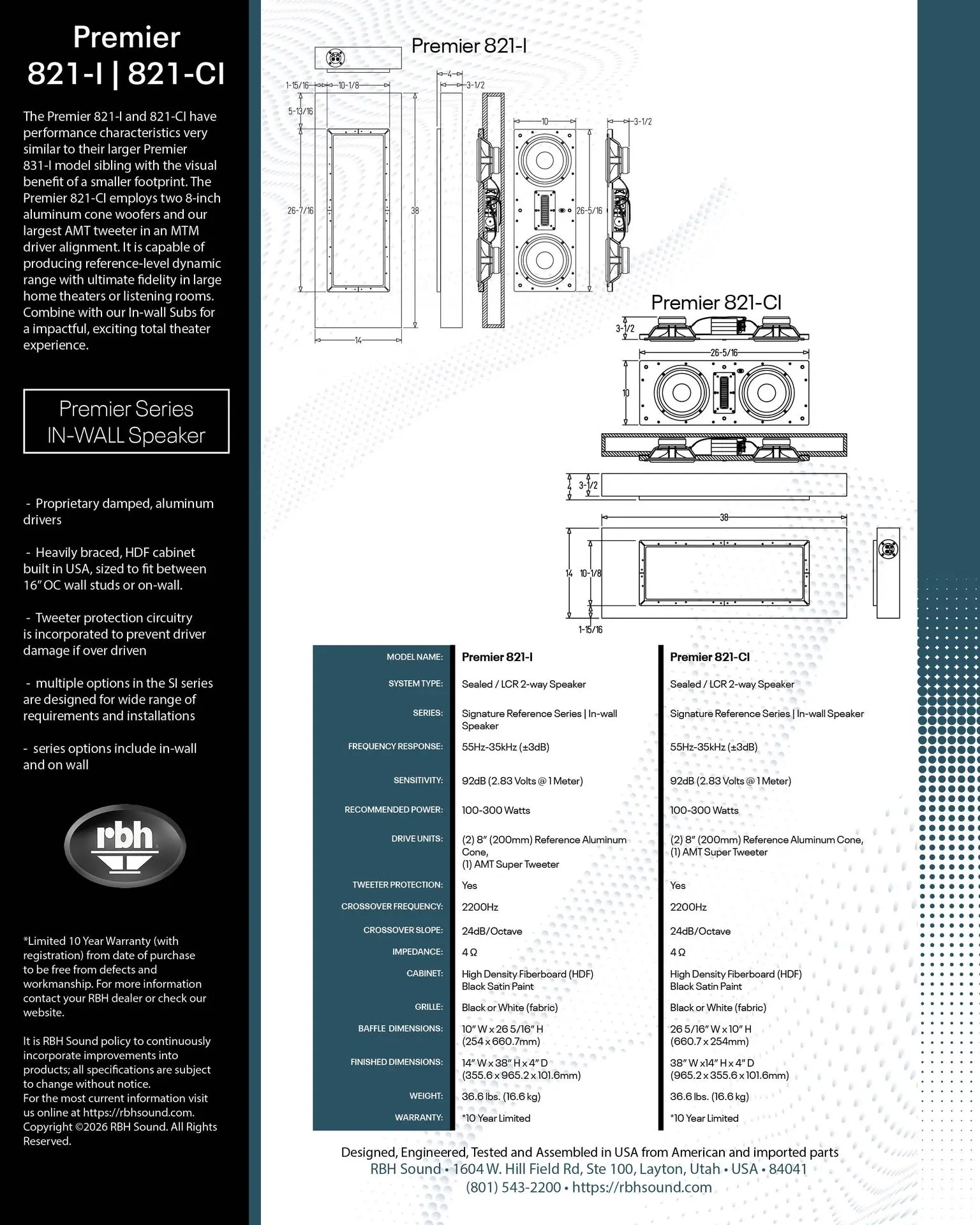 2-way Complete Set for Premier 821-I in-wall speaker
