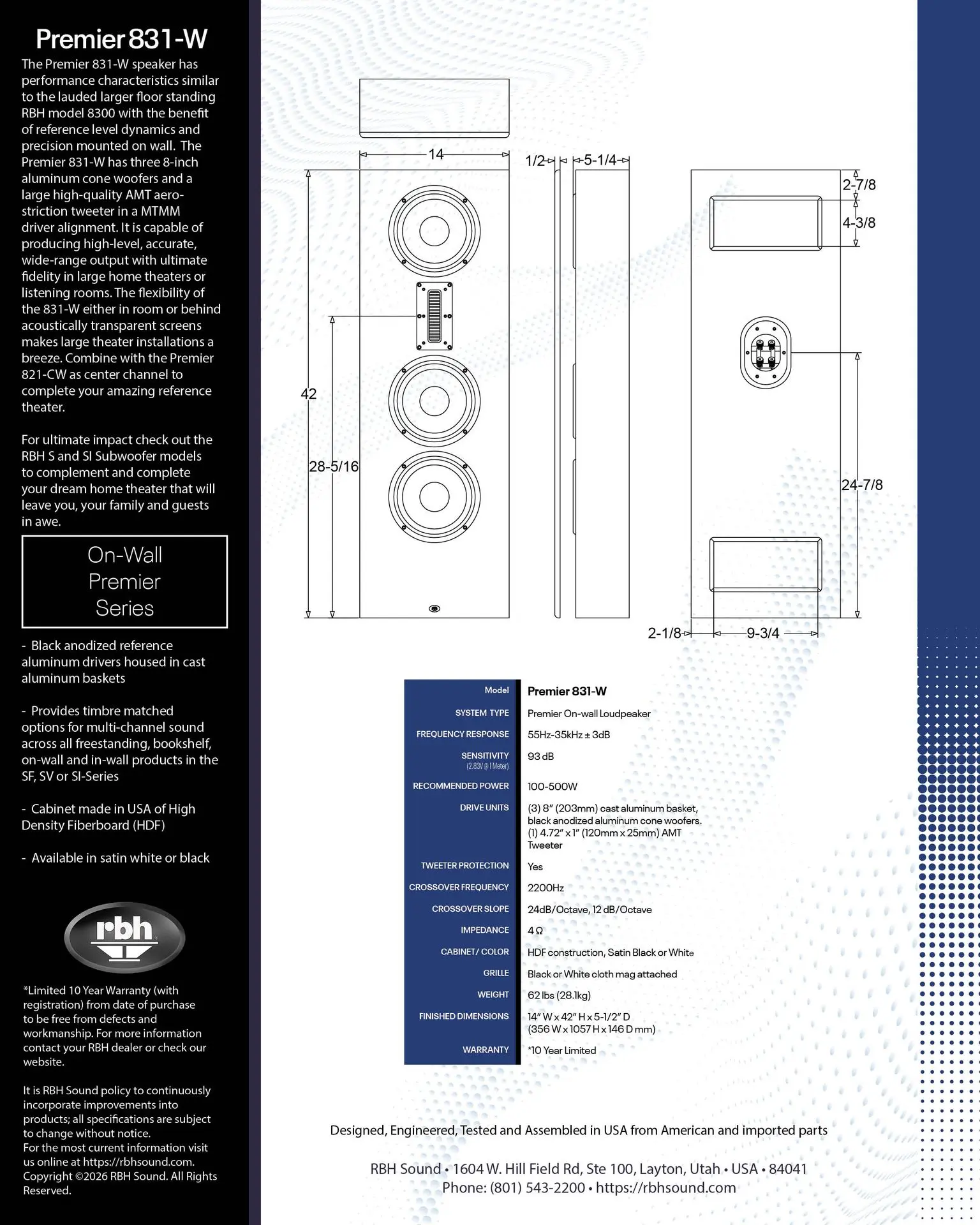 • 14"W x 42"H x 5"D (not including grille)
