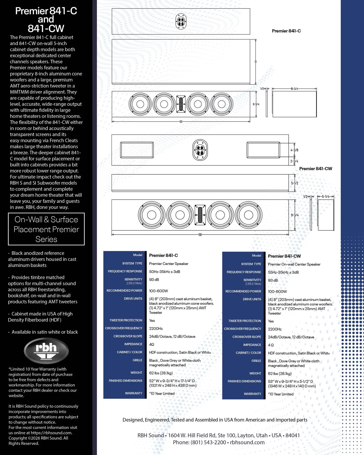 • 9.75"H x 52"W x 16.5"D (without grille)