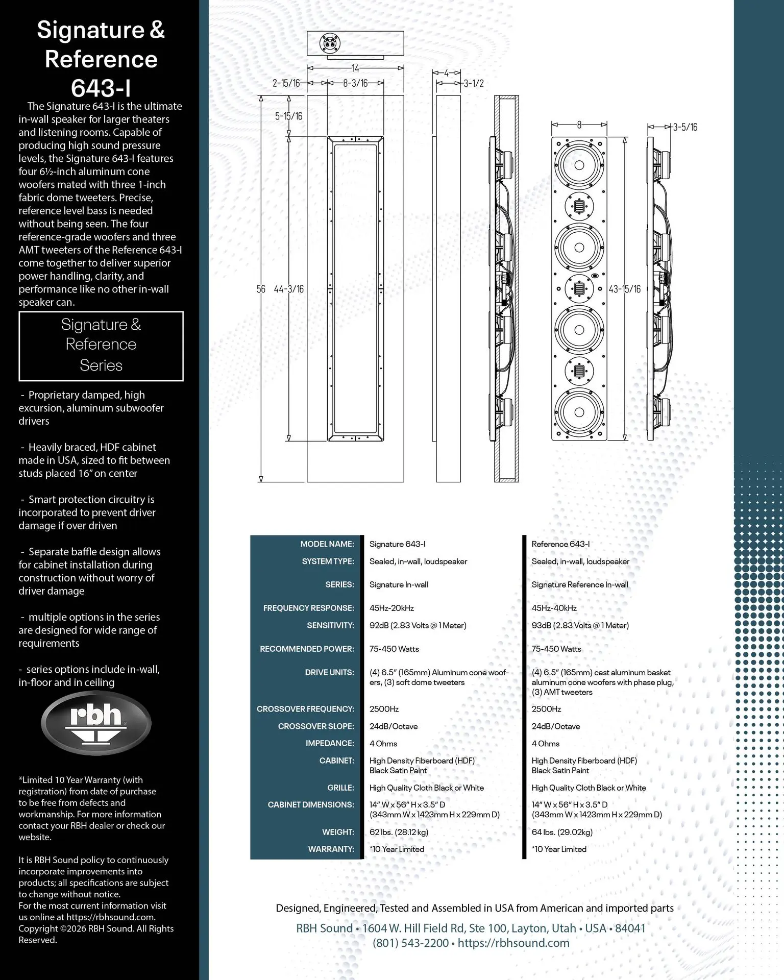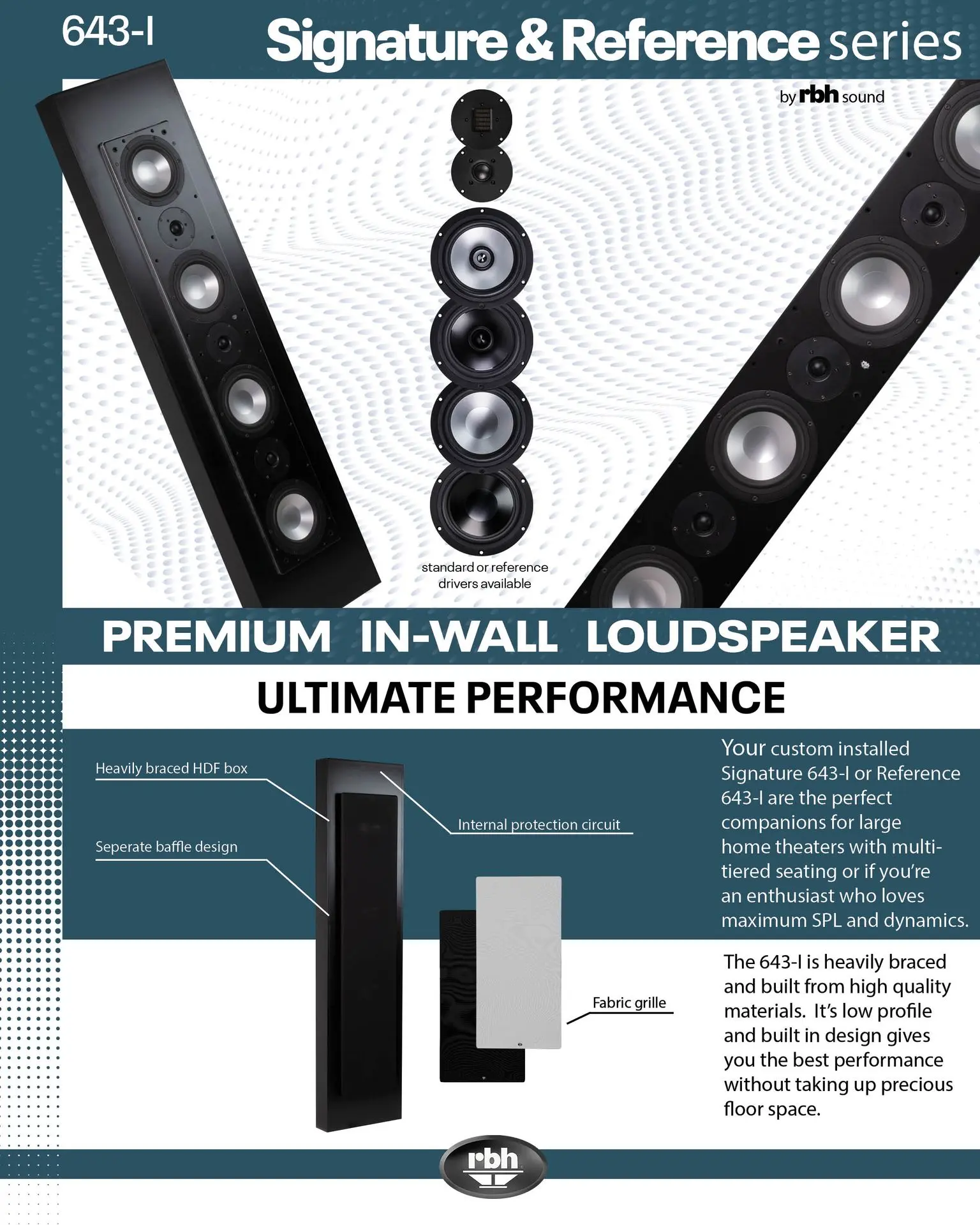 The reference version of the Signature 643-I, the Reference 643-I delivers performance beyond description. The four reference-grade woofers and three AMT tweeters come together to deliver superior power handling, clarity, and performance like no other in-wall speaker can.