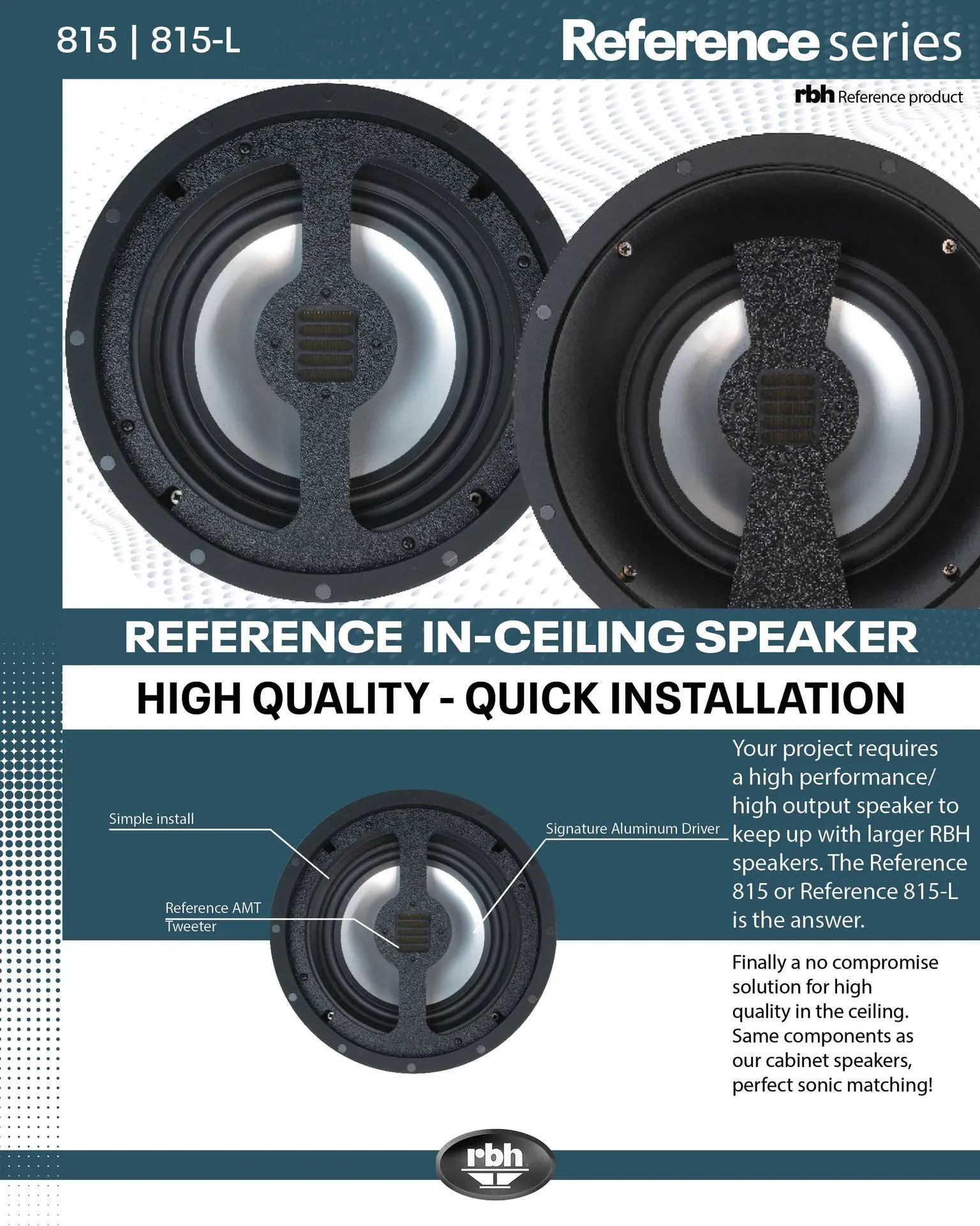 The Reference 815 is the answer for high fidelity and high output atmos speakers for the ultimate home theater experience.  Whether you're wanting speakers to keep up with your larger RBH towers or next level musical fidelity, the 815 is sure to delight!