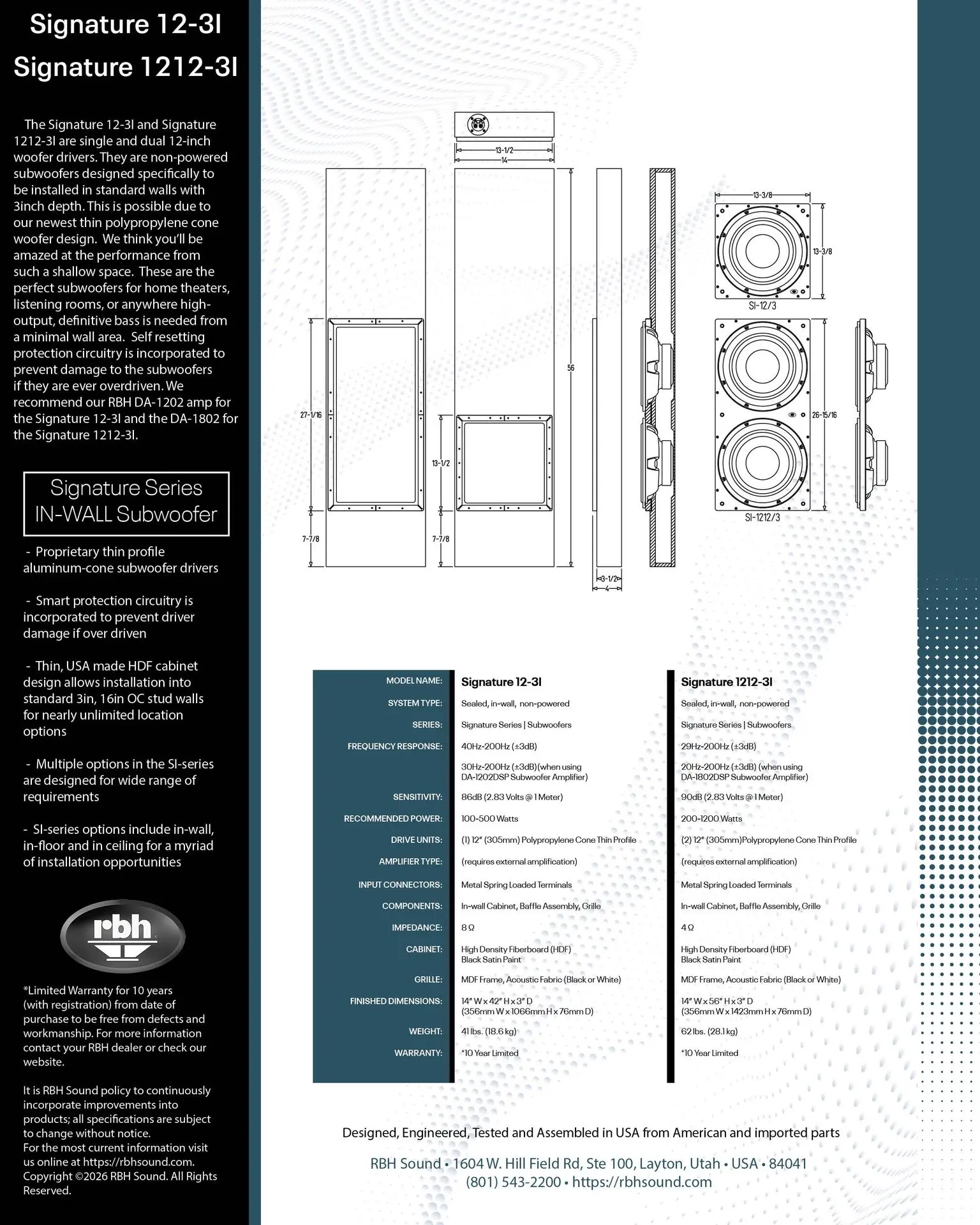 The spiritual successor to our acclaimed SI-10, the Signature 12-3I pushes the envelope further by utilizing a 12 inch high performance driver in a cabinet that is designed to fit in between standard wall studs. You'll be amazed at the performance of this low profile option when combined with our powerful DSP controlled DA amplifiers.